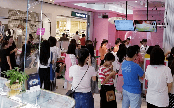 曼甜舒芙蕾隶属广州富樽旗下的自主甜品品牌,品牌整个的品牌色调非常明确——粉白色调,不加任何繁杂线条的辅助修饰,灵活运用了现今非常流行的所有网红店装饰元素,同时在这之中品牌设计师团队糅合当代建筑设计美学,巧妙地把灯光元素、镜面元素与粉白空间结合在一块,形成独树一帜的曼甜舒芙蕾品牌装修风格,本着舒适性原则,让人们能够在这里享受舌尖美味的同时身心能够得到放松。
